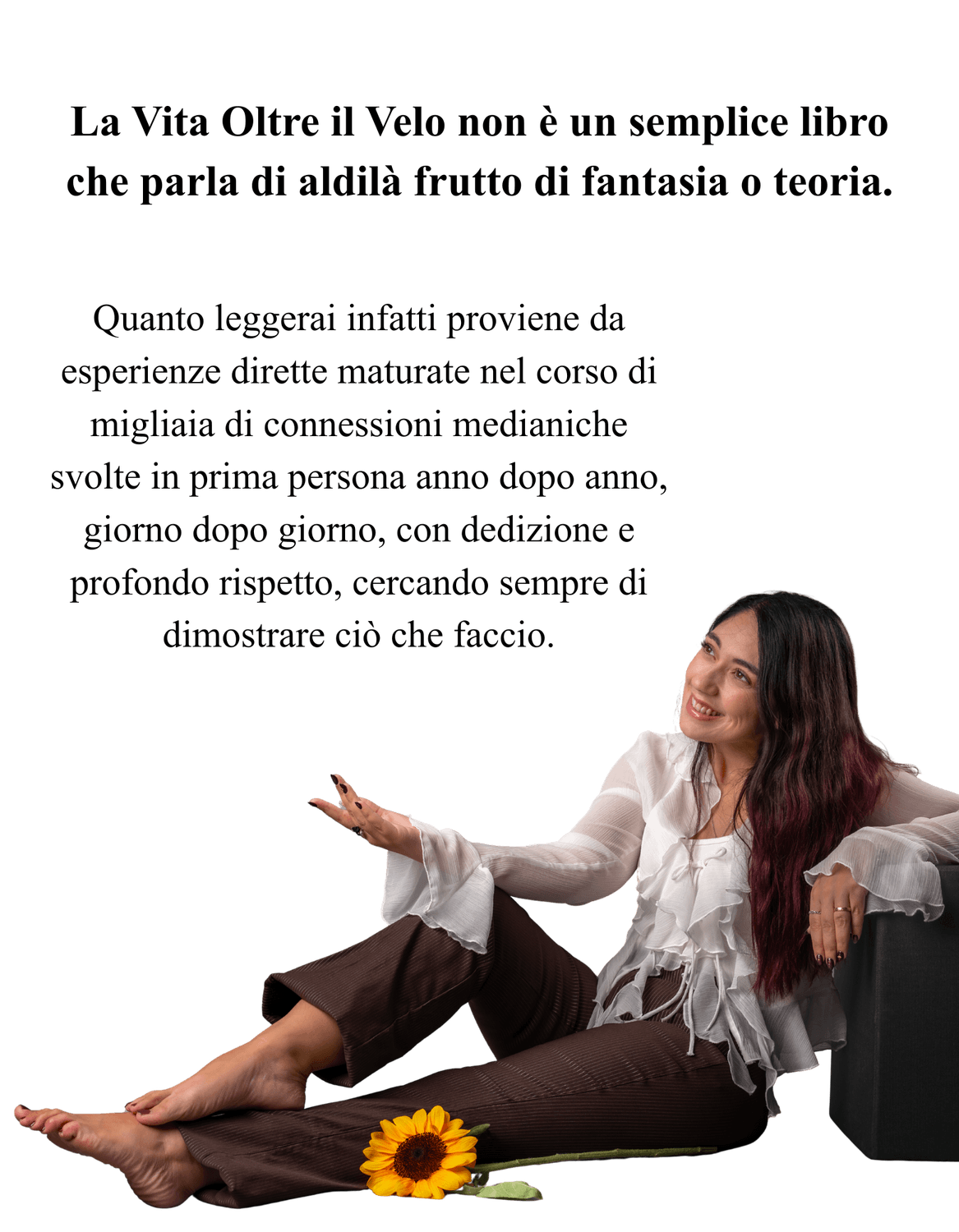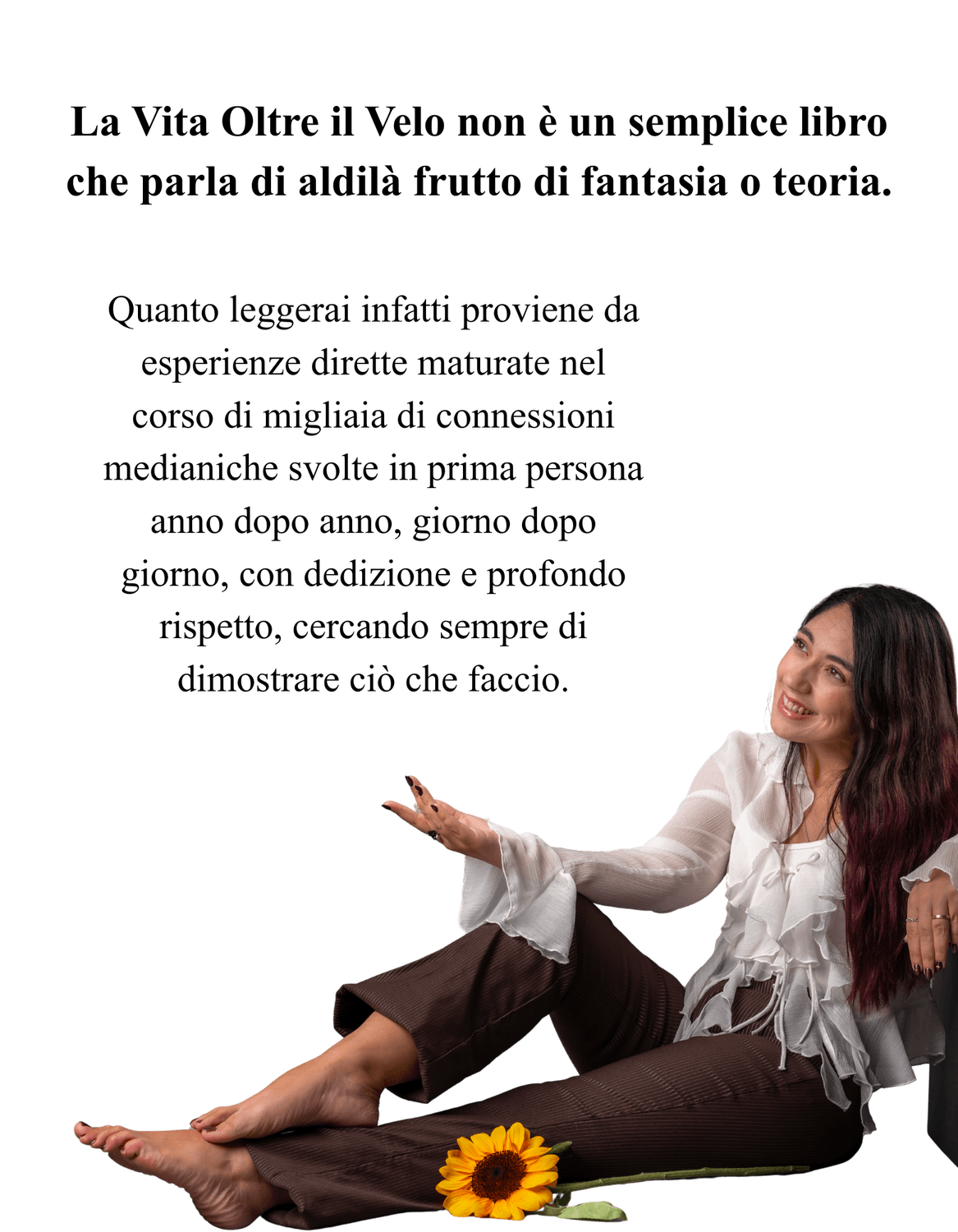 Parlare dell’Aldilà per me significa prima di tutto dare più valore alla vita, e se oggi mi permetto di farlo, se ho scelto di scrivere queste pagine, è perché sento profondamente che la mia esperienza può essere utile.